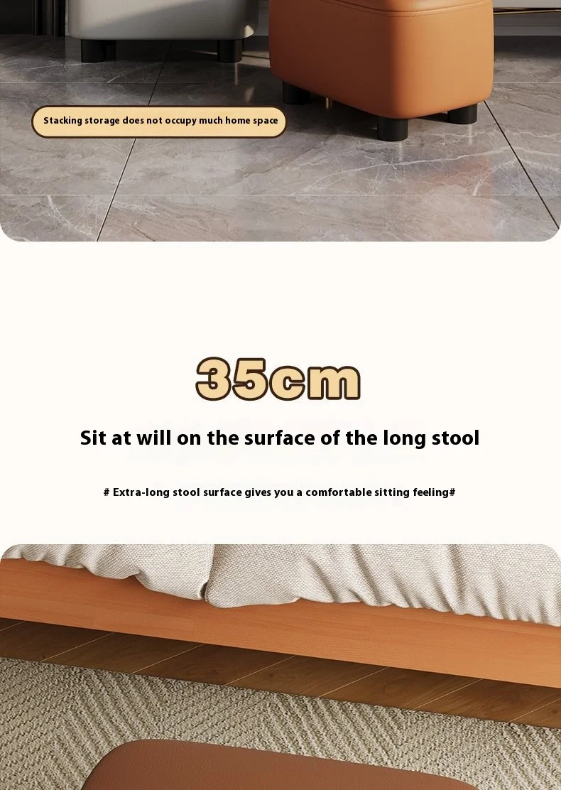 Dieser niedrige Schuhhocker aus PU-Leder und Massivholz ist eine durchdachte Kombination aus Komfort, Stauraum und modernem Design. Er eignet sich ideal für den Eingangsbereich, das Wohnzimmer oder das Kinderzimmer und erleichtert den Alltag beim An- und Ausziehen der Schuhe. Dank seiner kompakten Höhe ist er besonders benutzerfreundlich für Kinder und Erwachsene gleichermaßen.