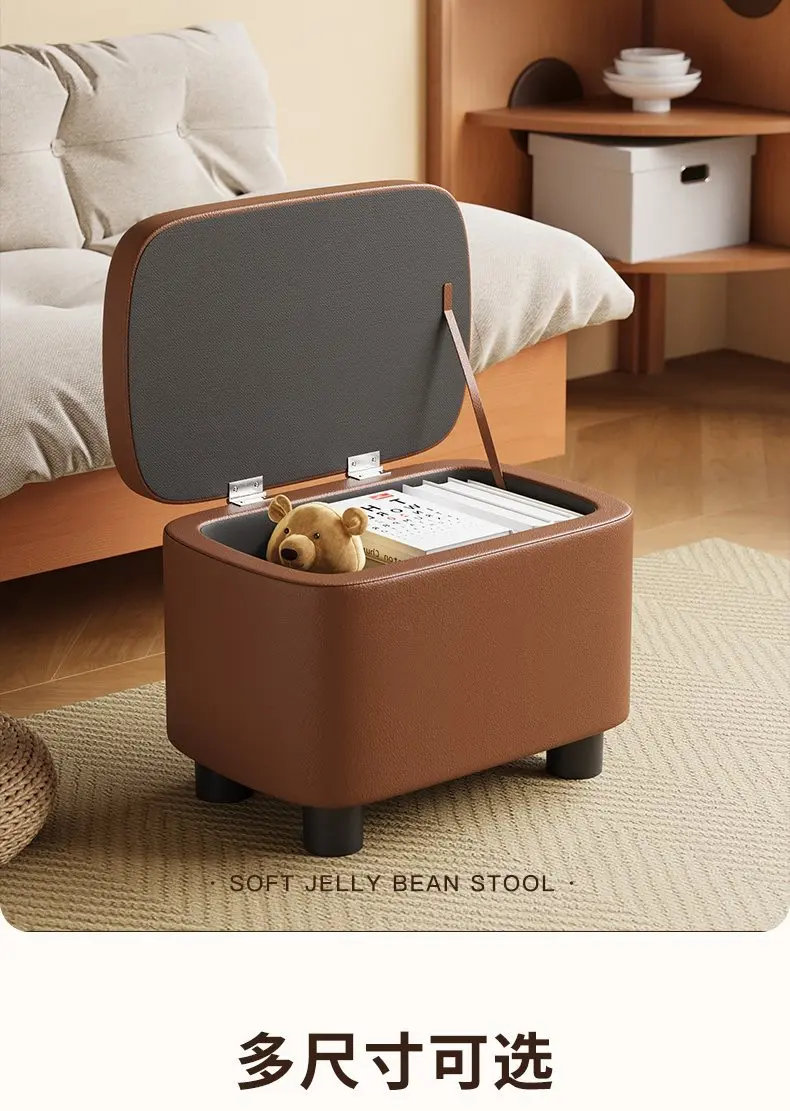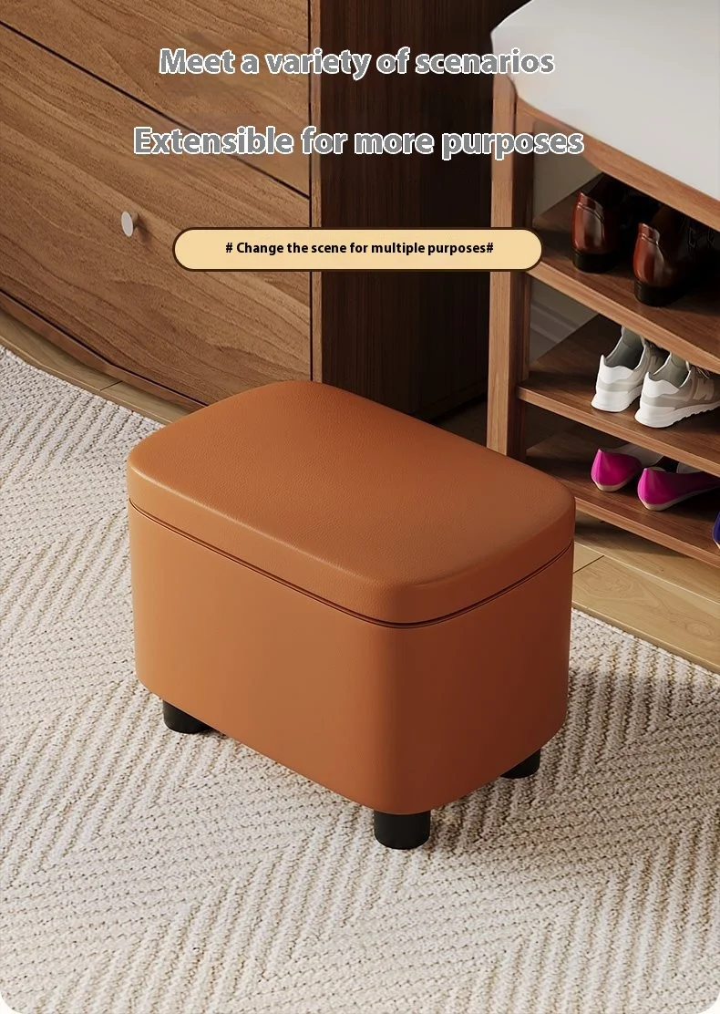 Unter der Sitzfläche verbirgt sich ein praktischer Stauraum, der zusätzlichen Platz für Schuhe, Hausschuhe, Spielzeug oder Alltagsgegenstände bietet. So bleibt der Wohn- oder Eingangsbereich stets aufgeräumt, ohne auf zusätzliche Möbel angewiesen zu sein. Der Stauraum macht diesen Lederhocker besonders funktional für Familien und kleinere Wohnungen.