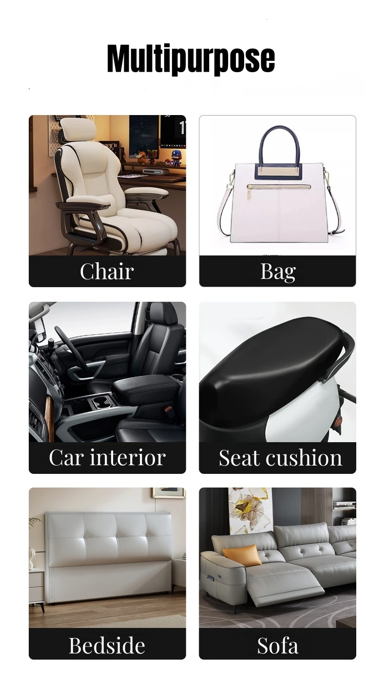 Die strukturierte Oberfläche im Litchi-Lederlook kaschiert kleine Unebenheiten und sorgt für ein hochwertiges Erscheinungsbild. Bei sachgemäßer Anwendung hält der Kleber zuverlässig und bietet eine langlebige Lösung für Reparatur und Neugestaltung.
