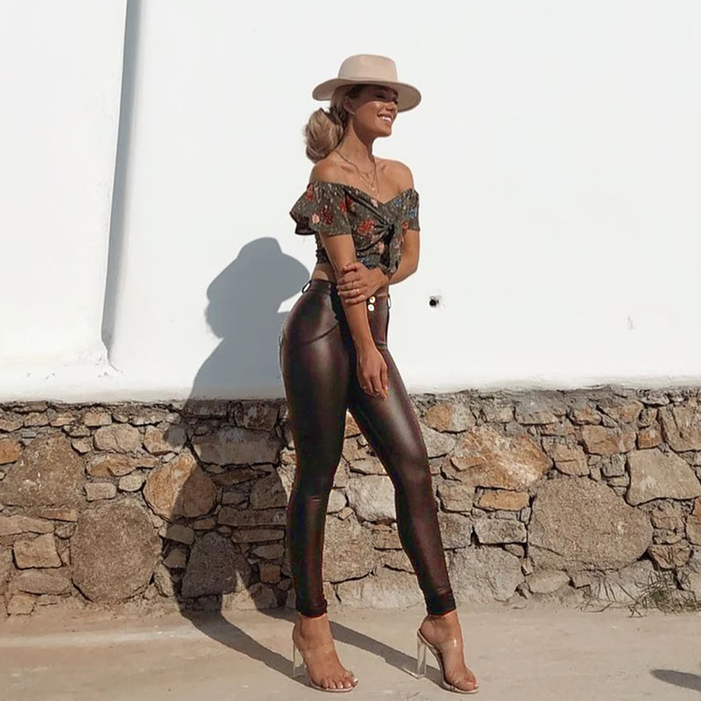 Shascullfits Melody Damen Lederleggings Push-Up – Braune Eco-Leder Leggings mit Stretch, figurformende Sport Tights