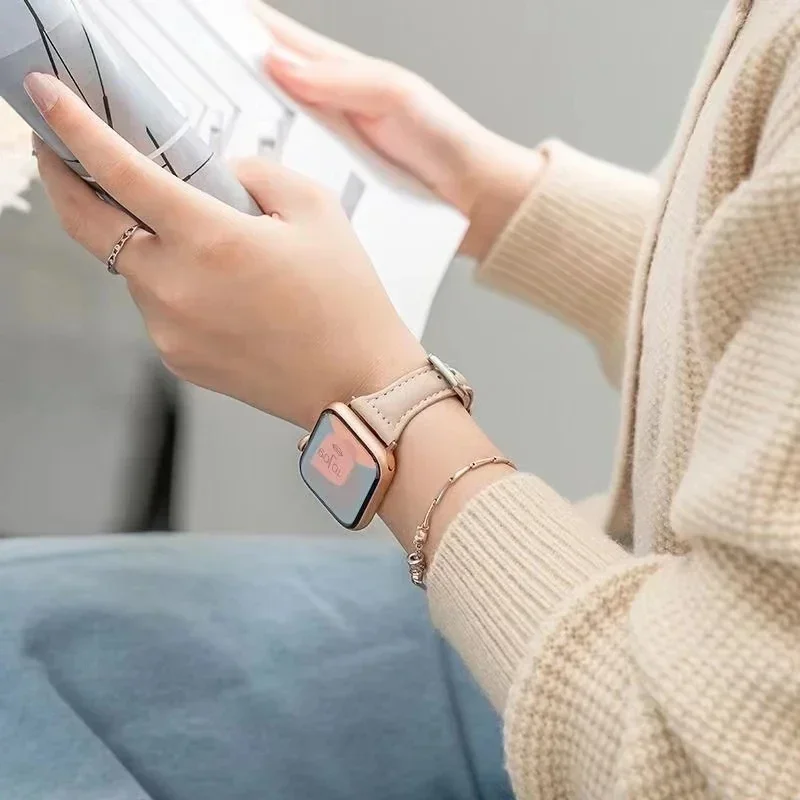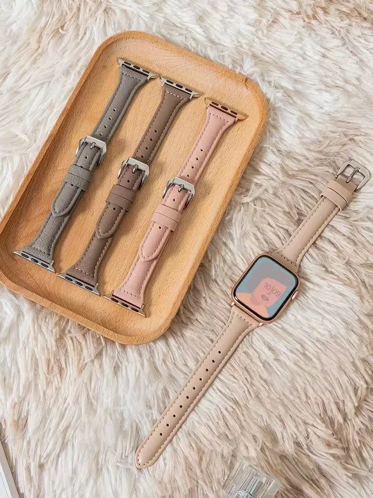 Slim Lederarmband für Apple Watch – Elegantes Damen iWatch Armband 38–49 mm für Series 1–10, SE & Ultra