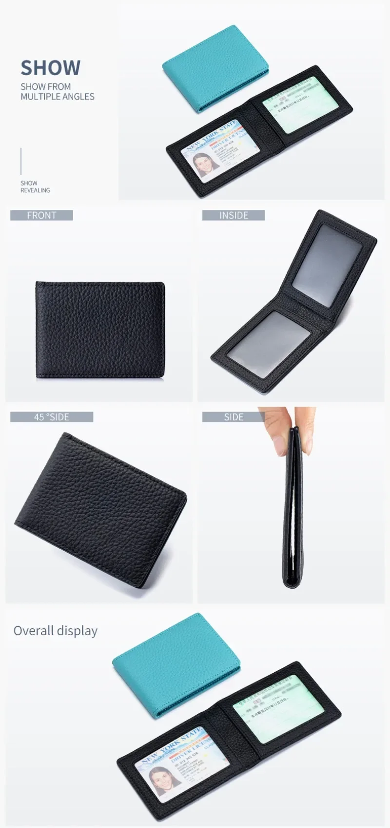 Das minimalistische Bifold-Design sorgt für eine klare Struktur und schnellen Zugriff. Besonders praktisch ist das integrierte ID-Sichtfenster, mit dem Ausweise oder der Führerschein vorgezeigt werden können, ohne sie herausnehmen zu müssen. Ideal für Kontrollen, den Arbeitsplatz oder unterwegs.