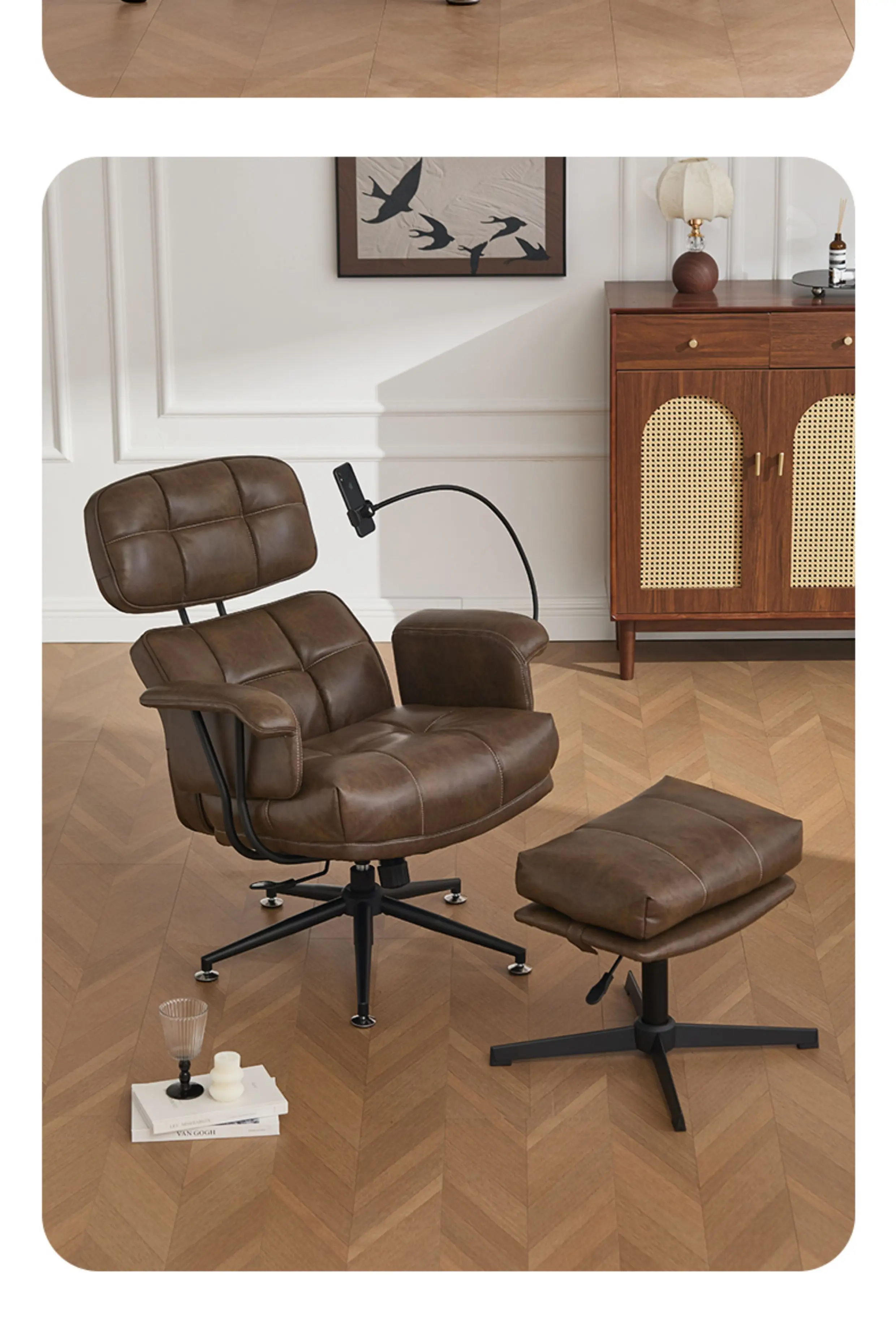 Verstellbarer Relax- & Bürostuhl aus PU-Leder mit Ottoman – Drehbarer Fernsehsessel mit Armlehnen für Home Office & Heimkino