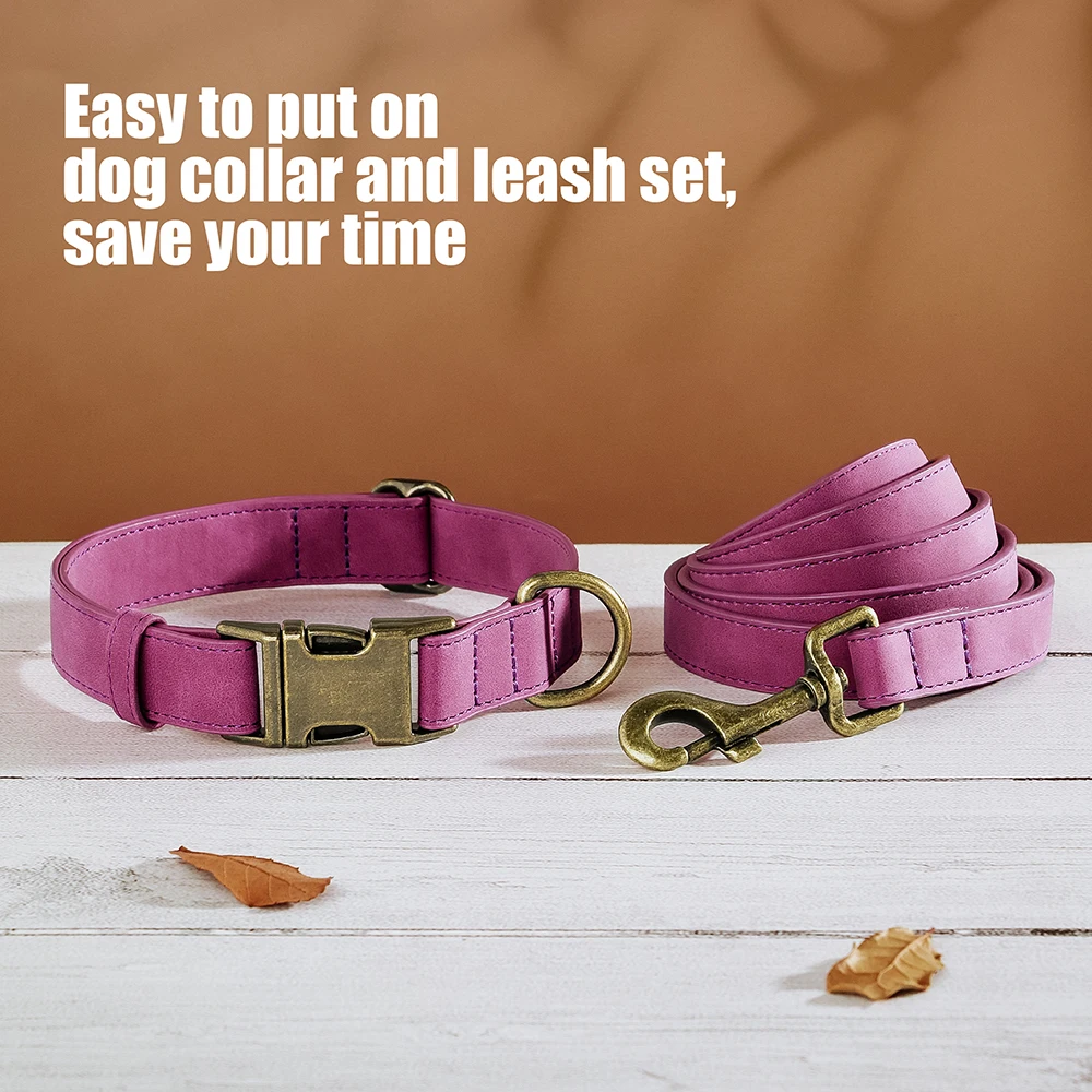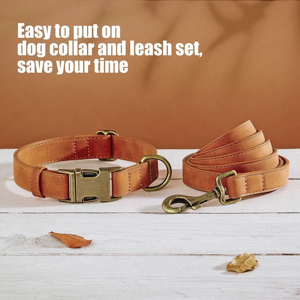 Verstellbares Hunde-Halsband & Leinen-Set aus PU-Leder – Weiches, langlebiges Hundehalsband mit Leine für kleine, mittlere & große Hunde