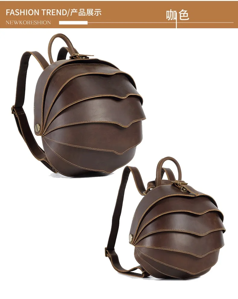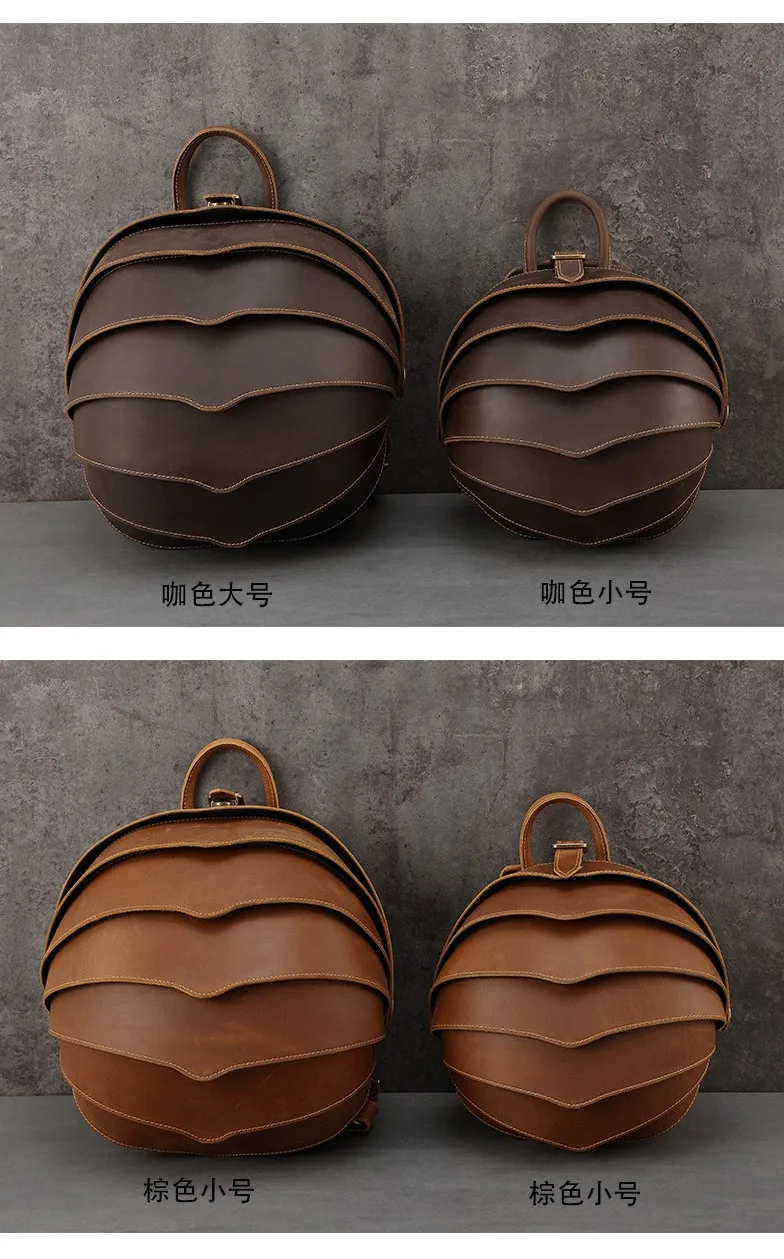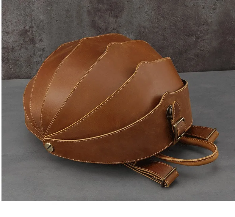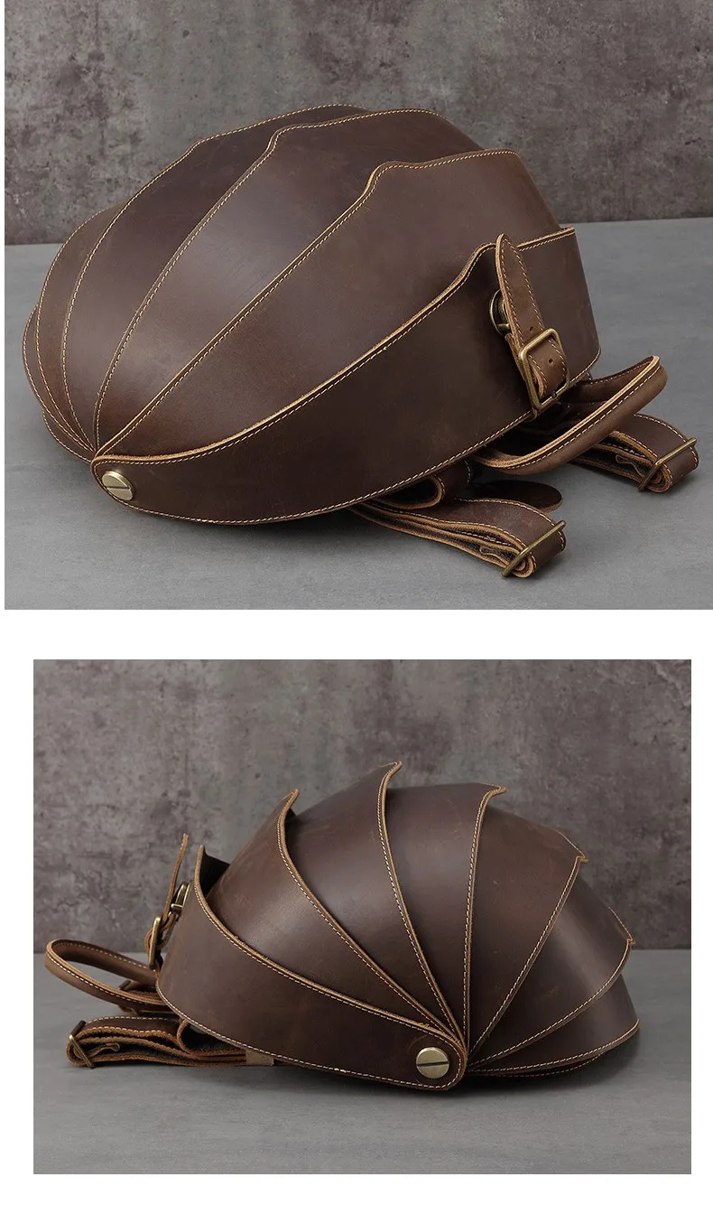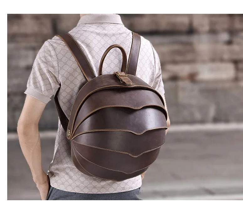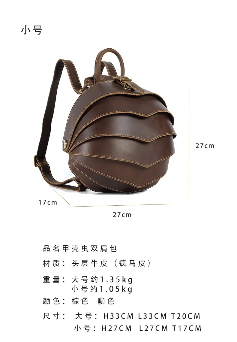 Vintage Beetle Leder Rucksack – Handgefertigter Unisex Daypack aus echtem Rindsleder im Street-Style