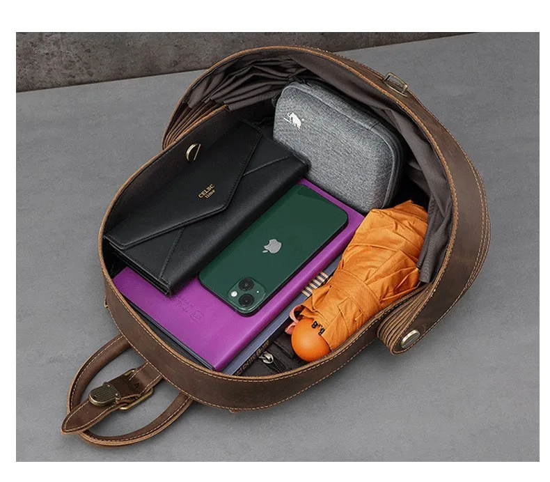 Gefertigt aus erstklassigem vollnarbigem Rindsleder (Crazy Horse Leder) überzeugt dieser Rucksack durch seine weiche Haptik und natürliche Struktur. Typische Farbnuancen, feine Kratzer oder Maserungen sind gewollt und verleihen dem Leder seinen authentischen Vintage-Charakter. Mit der Zeit entwickelt sich eine individuelle Patina – jeder Rucksack wird zu einem echten Unikat.