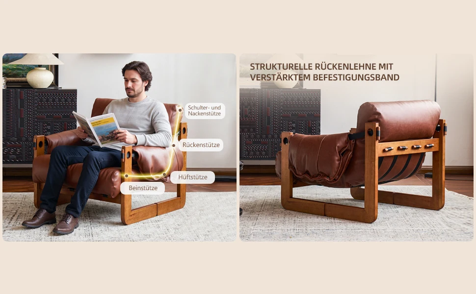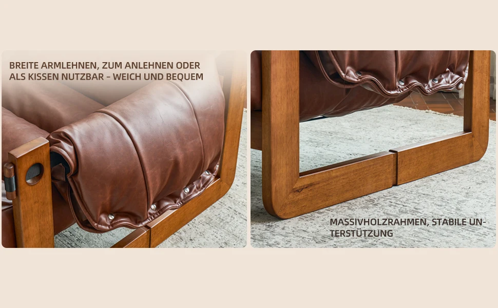 Dieser klassische Leder Sessel im Vintage-Stil ist die perfekte Wahl für alle, die ihrem Zuhause eine warme, elegante und zugleich gemütliche Note verleihen möchten. Mit seiner harmonischen Form, den bequemen Armlehnen und den soliden Holzfüßen verbindet dieser Sessel klassisches Design mit modernem Wohnkomfort. Ob im Wohnzimmer, Schlafzimmer, Arbeitszimmer oder in der Leseecke – dieser Sessel wird schnell zu Ihrem neuen Lieblingsplatz.