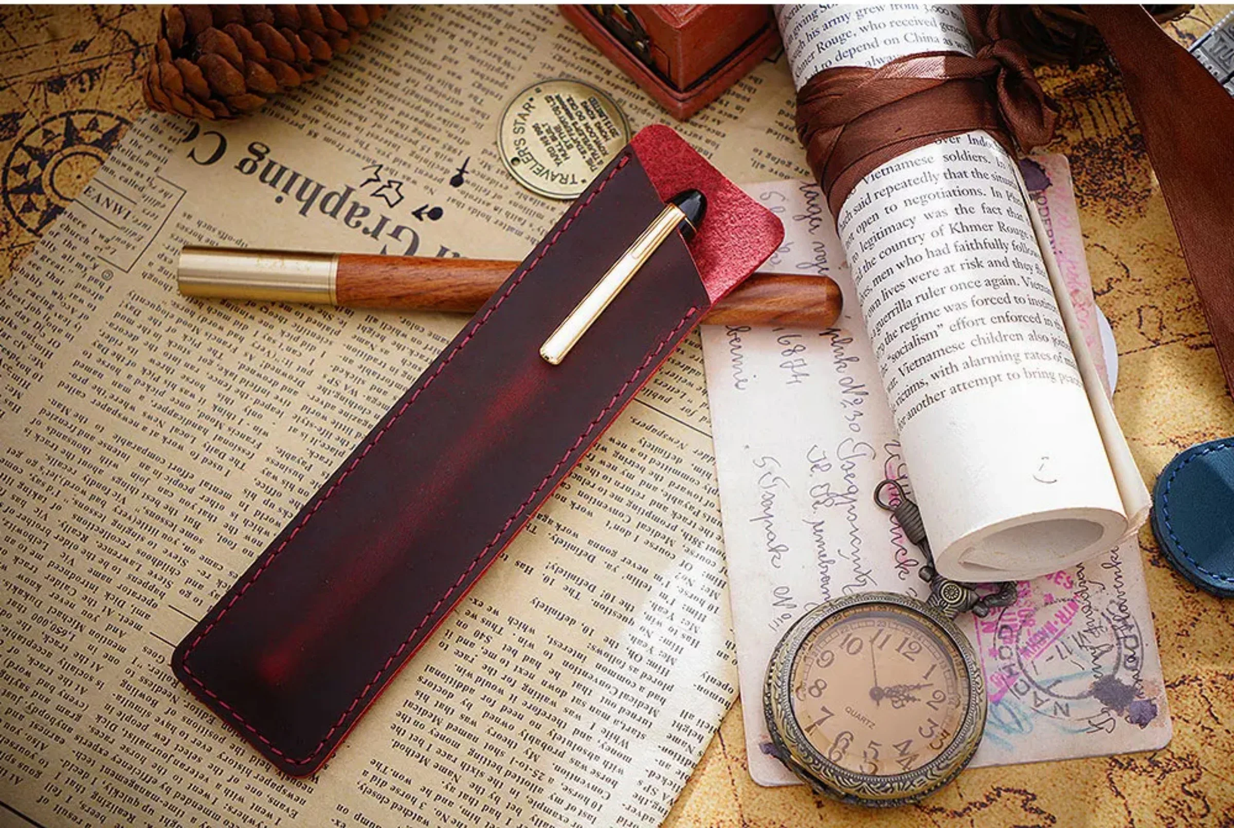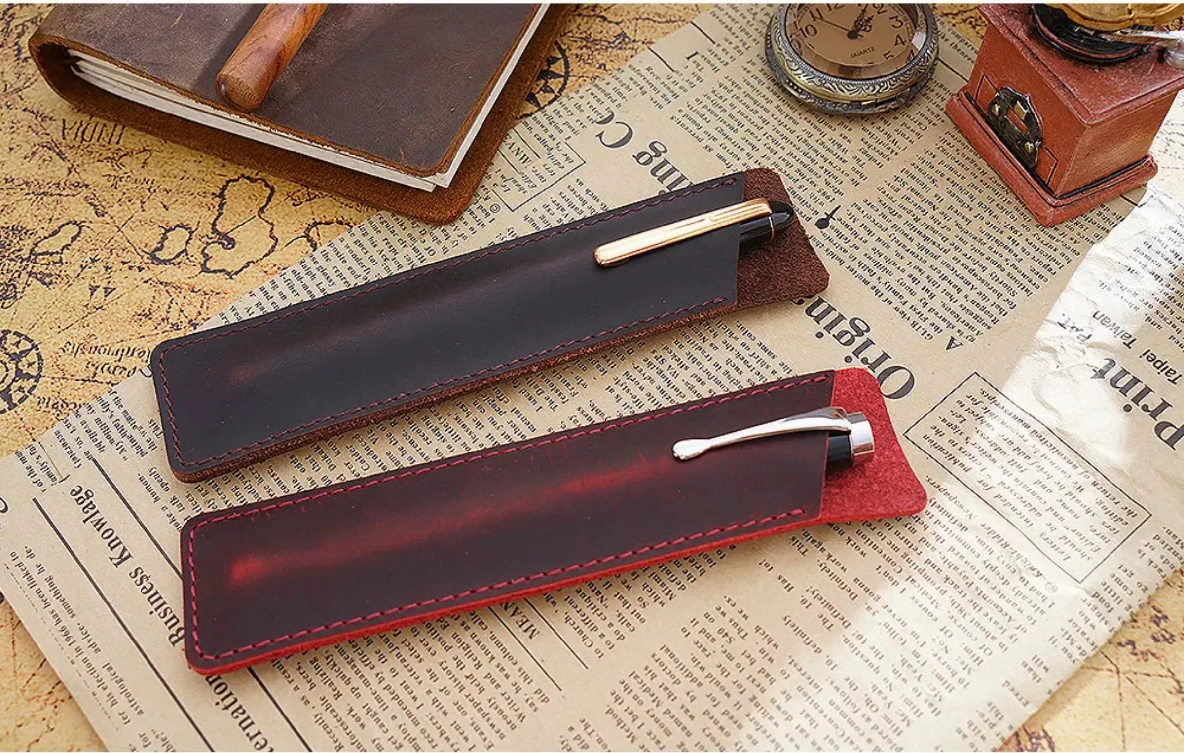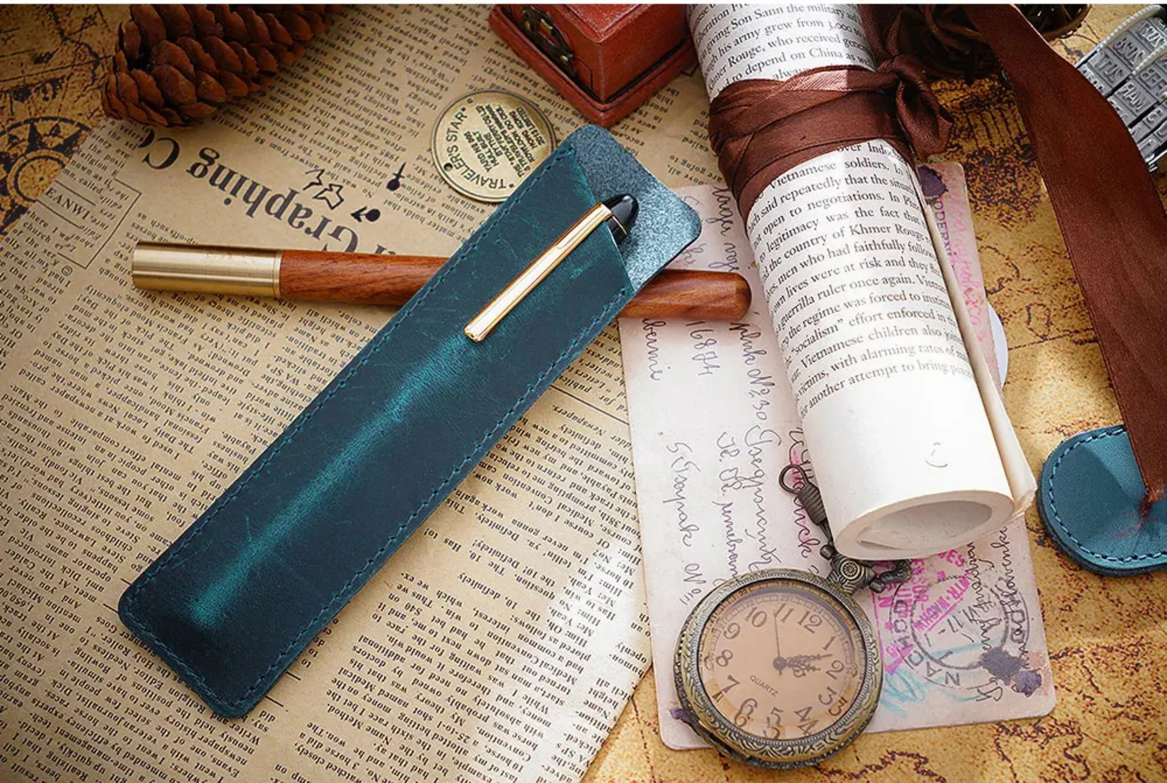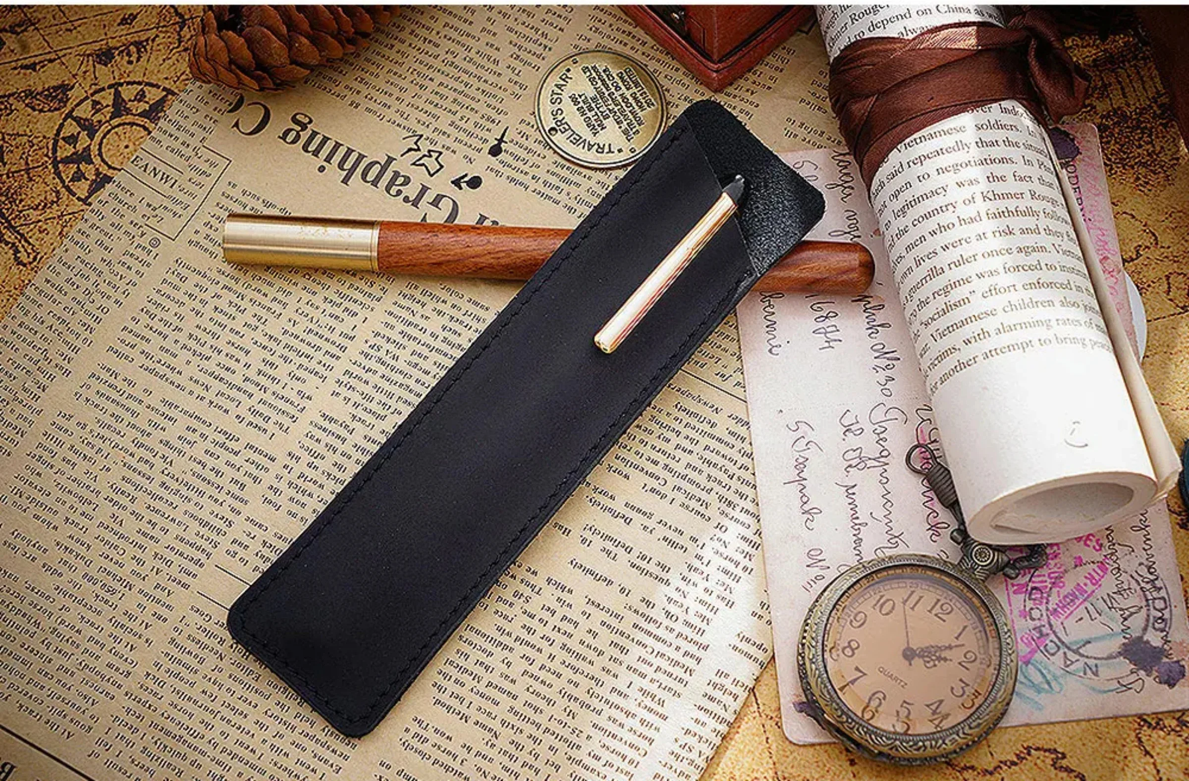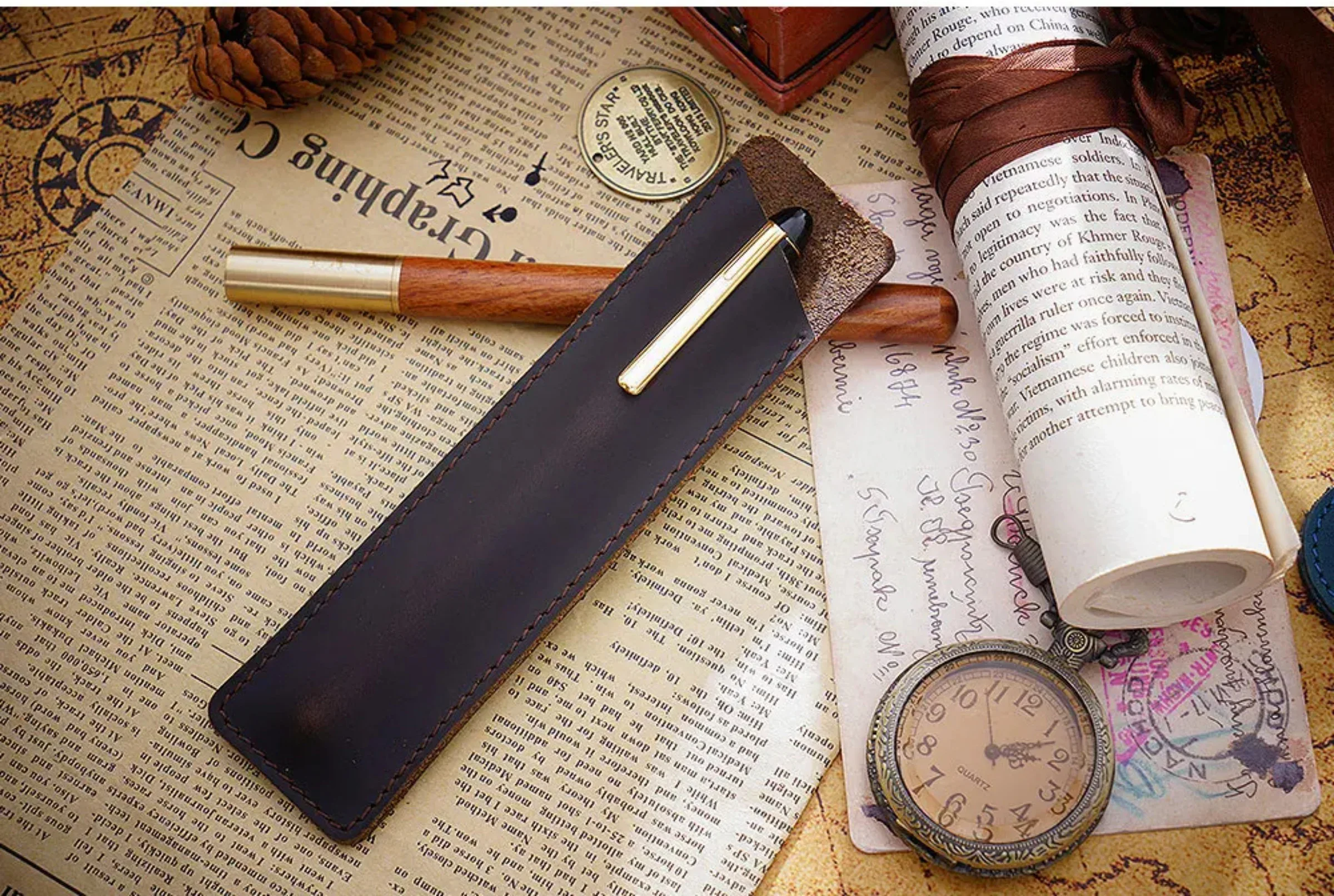 Vintage Leder Stifteetui für Notizbuch & Reise – Schlanke Pen Pouch aus echtem Leder für Büro & Schule