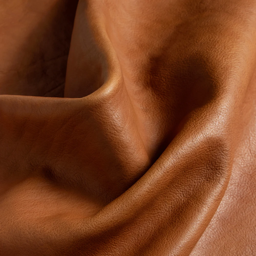 Gefertigt aus der ersten Hautschicht des Rinds, bietet das Leder eine glatte, edle Narbenseite und eine weiche Veloursrückseite. Die natürliche Struktur entsteht durch Trommelung ohne Prägung – jedes Stück ist ein Unikat mit individueller Tiefe und Lebendigkeit.