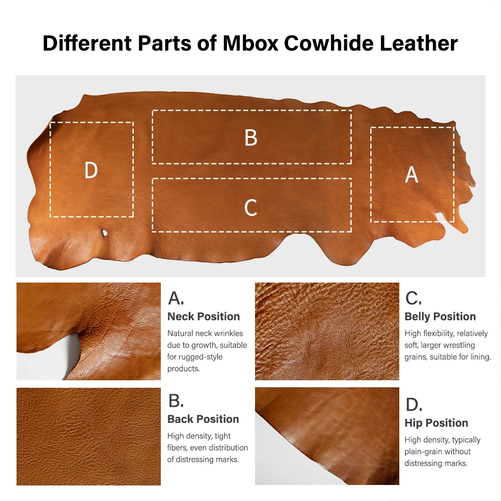 WUTA MBox pflanzlich gegerbtes Vintage Rindsleder – Natürlich genarbtes Vollnarbenleder 6–9 oz für Taschen, Gürtel & Lederhandwerk