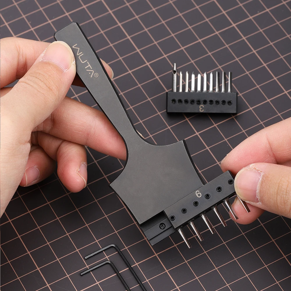 Mit dem WUTA multifunktionalen Leder Lochstanzer stellen Sie sich ein Werkzeug zusammen, das exakt zu Ihrem Stil und Ihren Projekten passt.