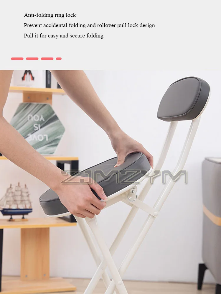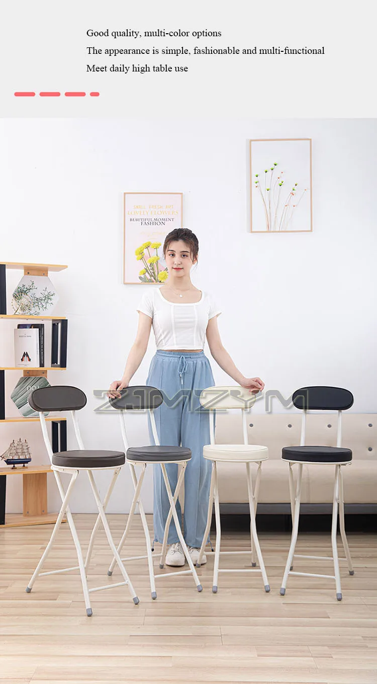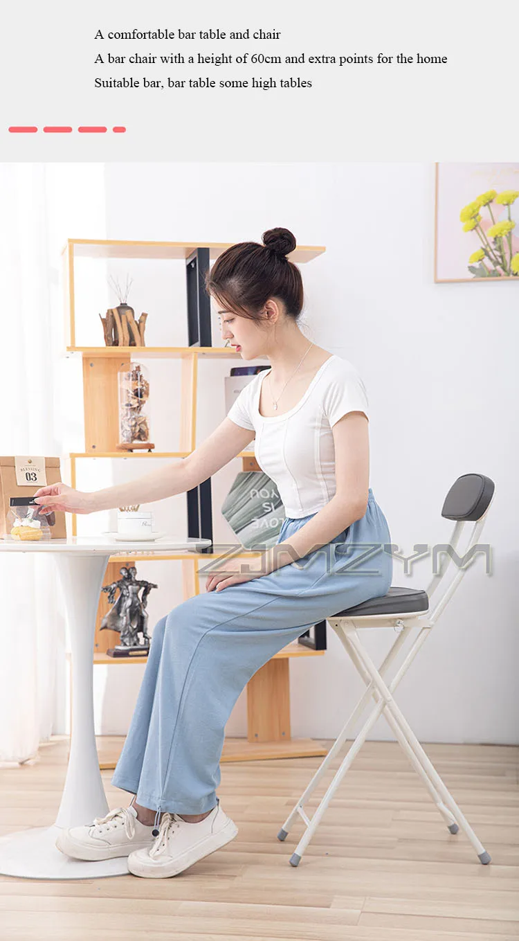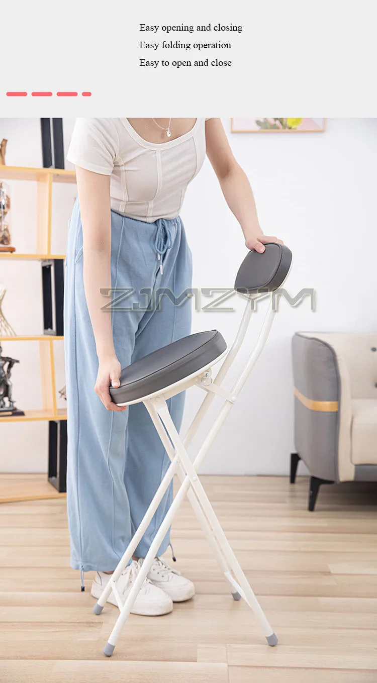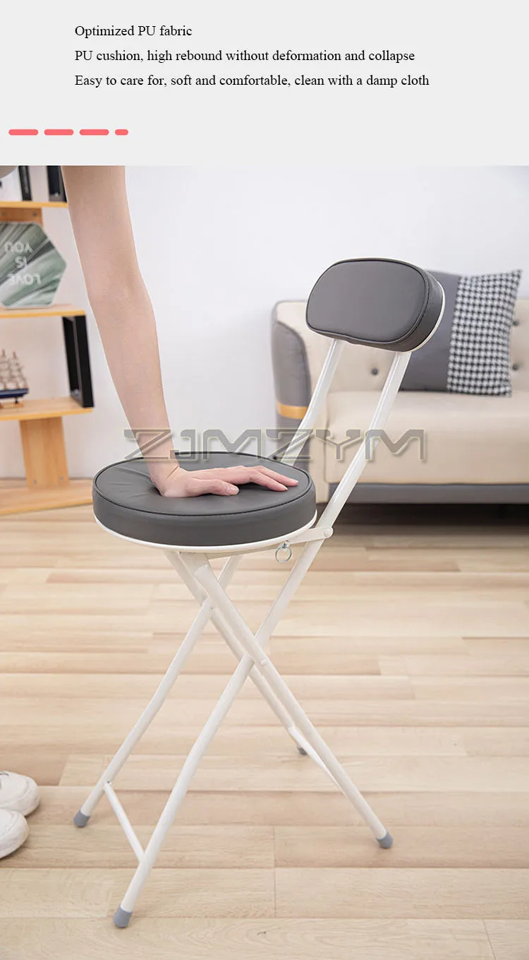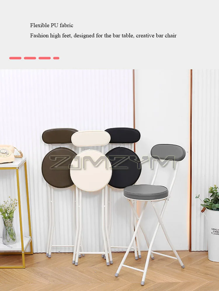 ZJMZYM Klappbarer Barhocker aus PU – Moderner, platzsparender Faltstuhl mit Rückenlehne für Küche, Café & kleine Räume